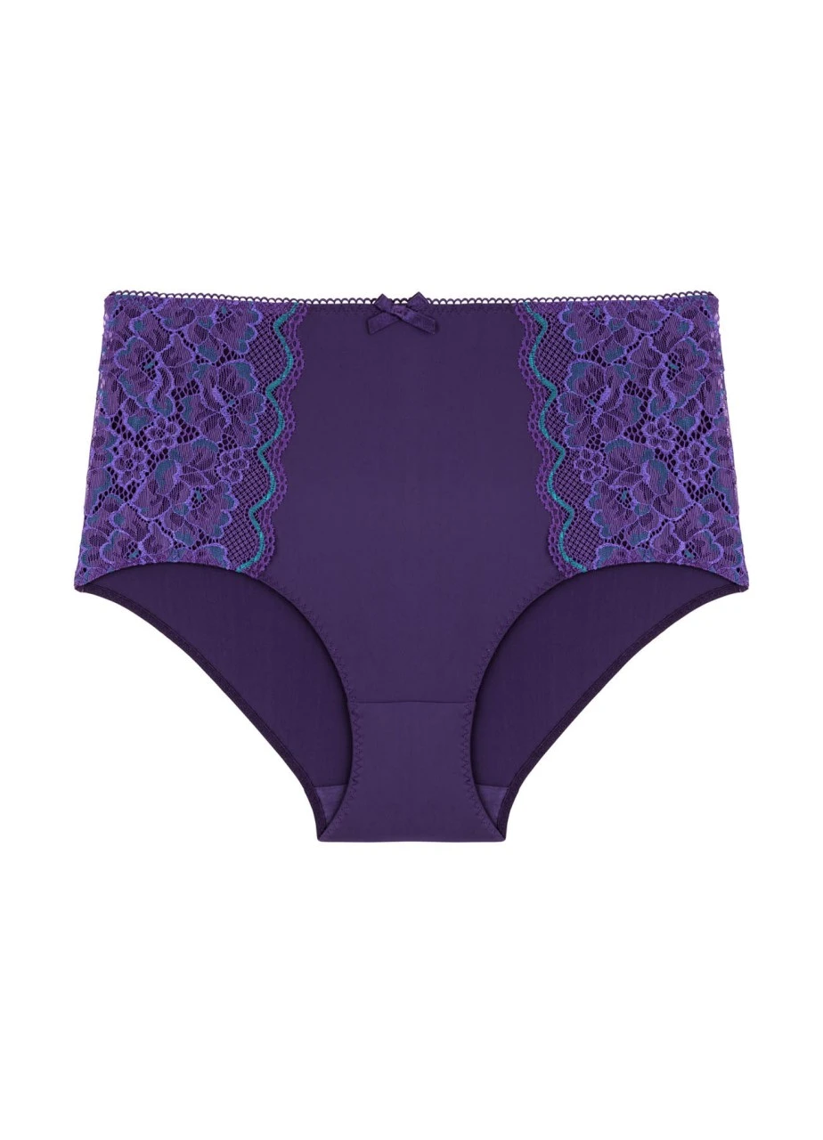 Wie auch der Spitzen-BH des Sets „Luccia“ ist auch sein Panty etwas ganz Besonderes. Sein dunkles Lila mit den leuchtend blauen Details schmeichelt Ihren Kurven. Marke: BESTFORM