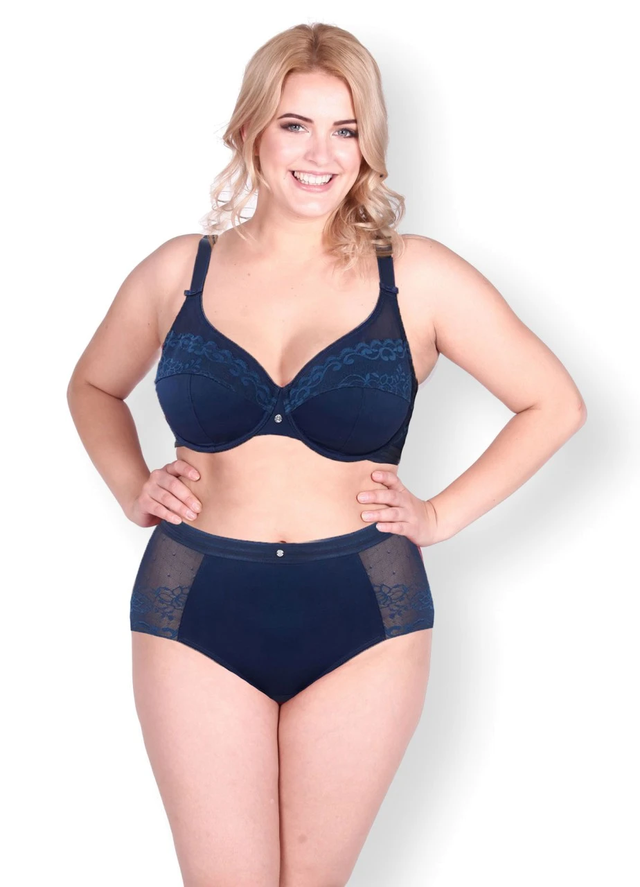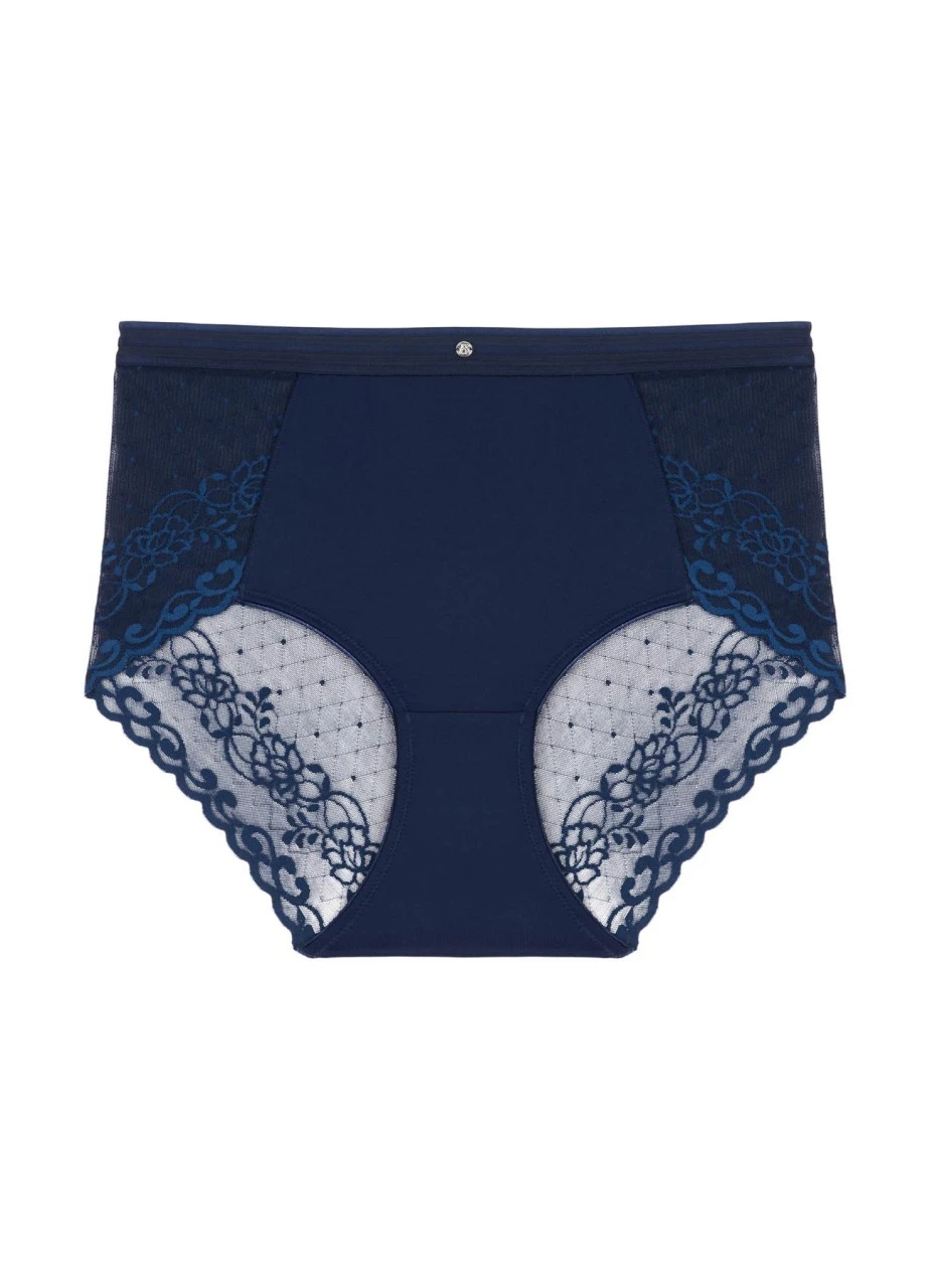 Der Taillenslip „Just Perfect“ ist optimal für eng anliegende dunkle Kleider. Sein hoher Bund sorgt dafür, dass unschöne Stellen einfach verschwinden und ein flacher Bauch zum Vorschein kommt. Sein edles Blau kombiniert mit zarter Spitze bieten zusätzlich was fürs Auge. Aufgrund des hohen Elasthananteils handelt es sich um Soft-Control Lingerie. Es wurde eine hochelastische, flache Spitze verwendet. Die Hose hat am Beinausschnitt keinen Gummi und liegt somit komplett flach. Marke: BESTFORM