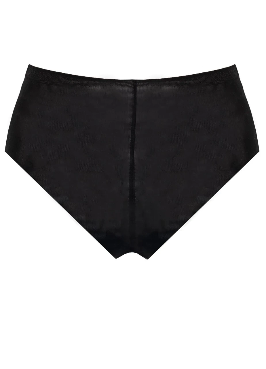 Der Bodyforming Brazil Slip „Open Secret“ in klassischem Schwarz hat die modische Schnittform High Waist mit weichem Bund, im Poteil eine Brazilform. Er ist doppellagig in Vorder- und Rückenteil (softshaping). Die flachen Abschlüsse sind ideal für enganliegende Kleidung. Ebenso ist schwarzes Powermesh in diesem Slip eingearbeitet.