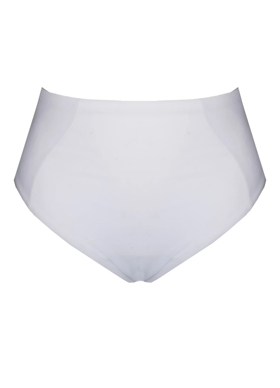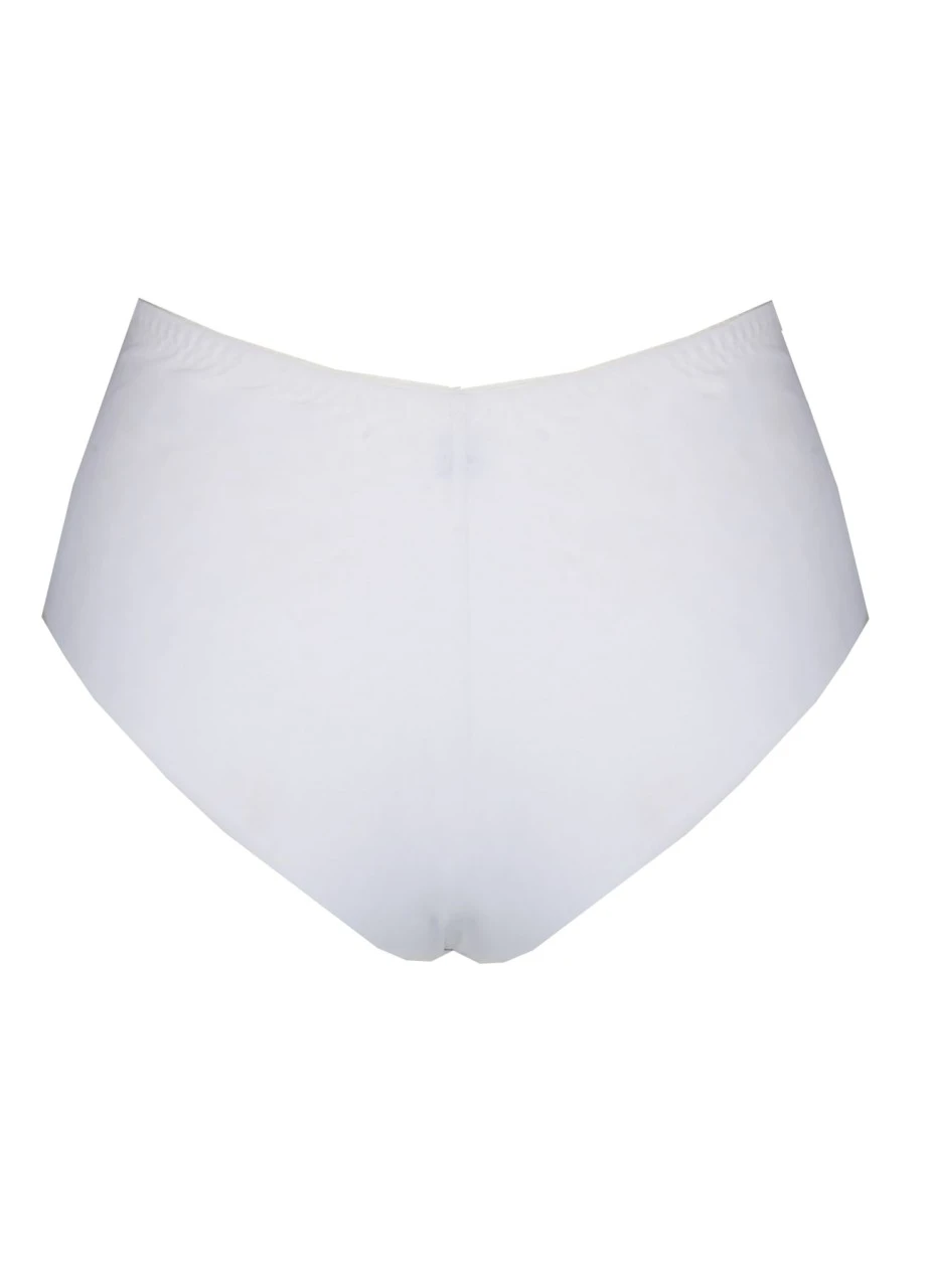 Der Bodyforming Brazil Slip „Open Secret“ in klassischem Weiß hat die modische Schnittform High Waist mit weichem Bund, im Poteil eine Brazilform. Er ist doppellagig in Vorder- und Rückenteil (softshaping). Die flachen Abschlüsse sind ideal für enganliegende Kleidung. Ebenso ist weißes Powermesh in diesem Slip eingearbeitet.