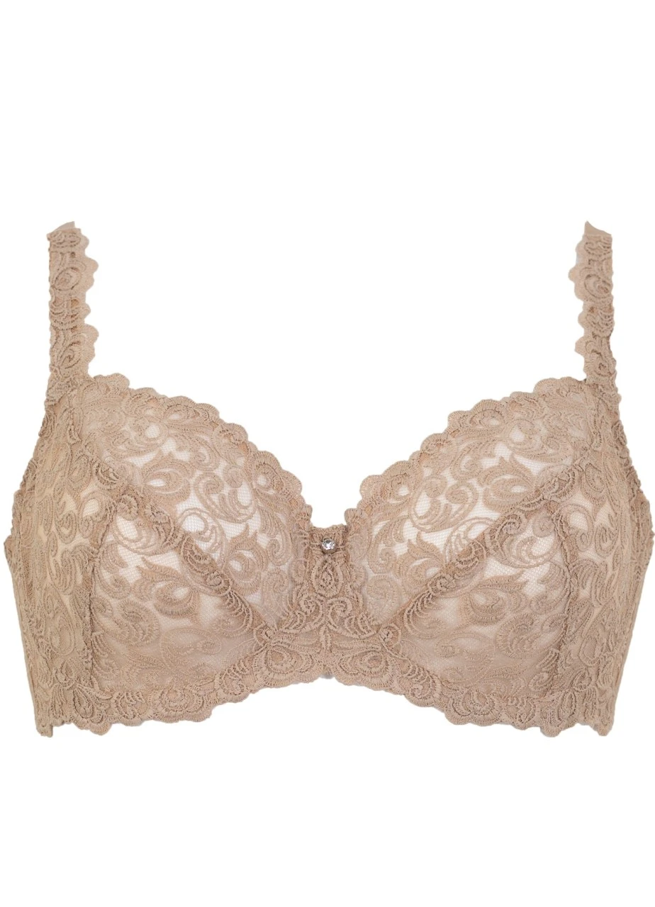 Der elegante Bügel-BH „Angelina“ garantiert exzellente Passform speziell für große Cups. Bei diesem Modell trifft sehr hoher Tragekomfort auf ein sehr edles Design. Die ungepolsterten Körbchen sind ideal für größere Cup-Sizes. Sorgfältig ausgearbeitete Bügel und Träger sorgen für ein äußerst angenehmes Tragegefühl. Die Trägerlänge ist individuell verstellbar und die Trägerbreite wächst mit je nach Größe (für Details siehe Größentabelle in den Fotos).