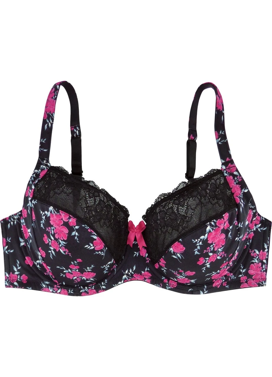Der schwarze Bügel-BH „Diana“ in limitierter Stückzahl kombiniert erstklassige bedruckte Microfaser mit edler schwarzer Spitze. Die Cups mit Spitzenabschluss formen ein wunderschönes Dekolleté.