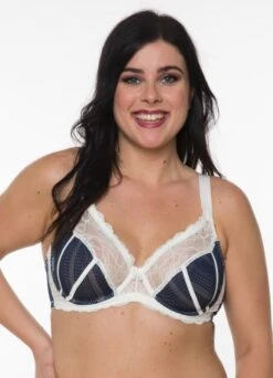 Dieser aufreizende Bügel-BH mit dem Namen „Lola“ vereint besonders sexy und verführerische Elemente: Die Kombination aus transparenter und feiner Spitze in ecru & marine! 2580ON