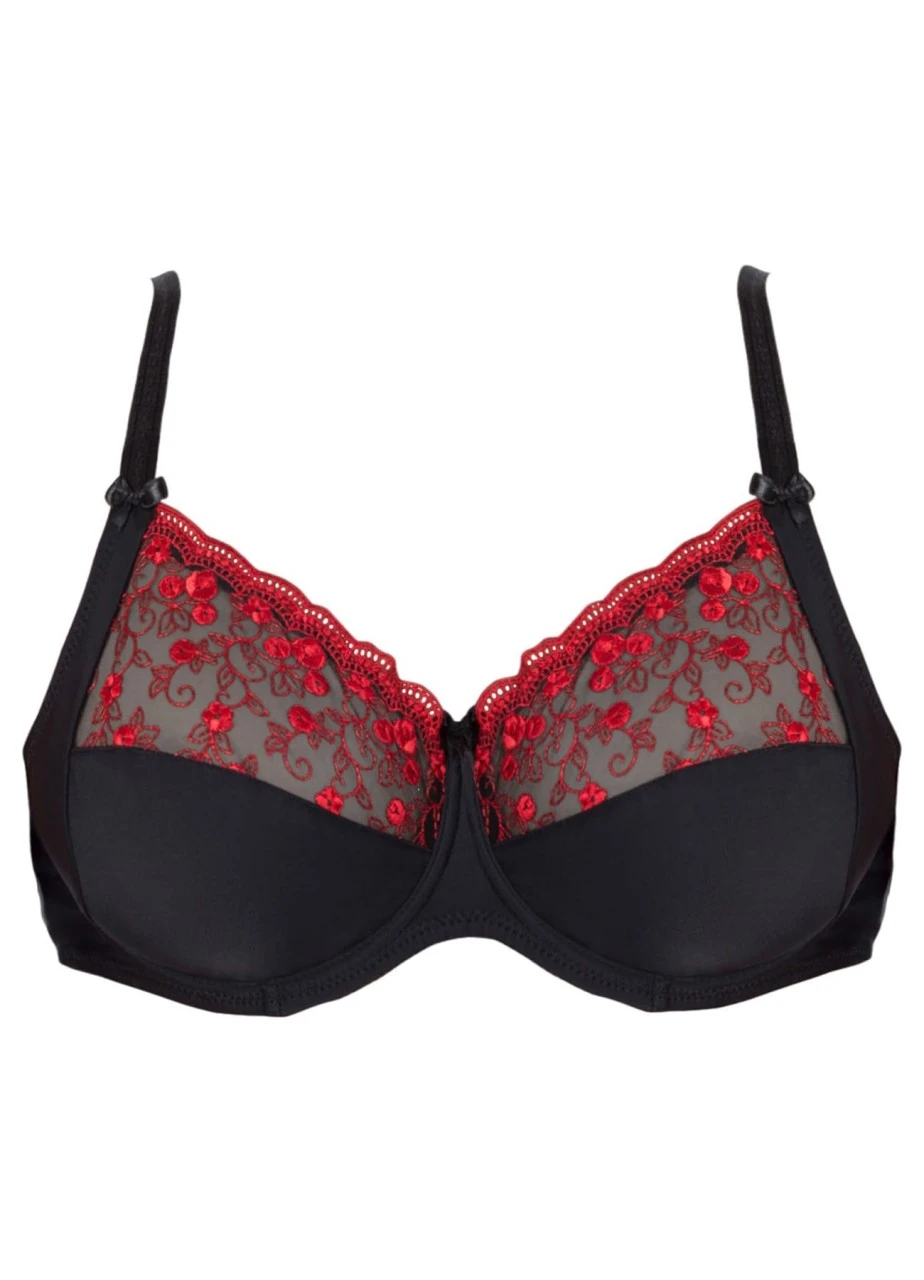 Bügel-BH „Luxury Lace Temptation“ | Schwarz Mit Roter Spitze