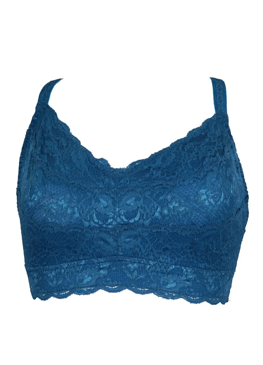 Der bügellose Bralette-BH „Never Say Never“ ist speziell für Cups E – H geeignet. Er besitzt breite, verstellbare Träger. Für guten Halt ist er mit Powermesh gefüttert. Ein dehnbares Unterbrustband sorgt für eine bessere Passform. Eine weiche, rundgezackte und nicht-transparente Stretch-Spitze wurde eingearbeitet. Das Bralette kann ganz einfach übergezogen werden, ohne Verschluss. Made in Europe. Marke: Cosabella