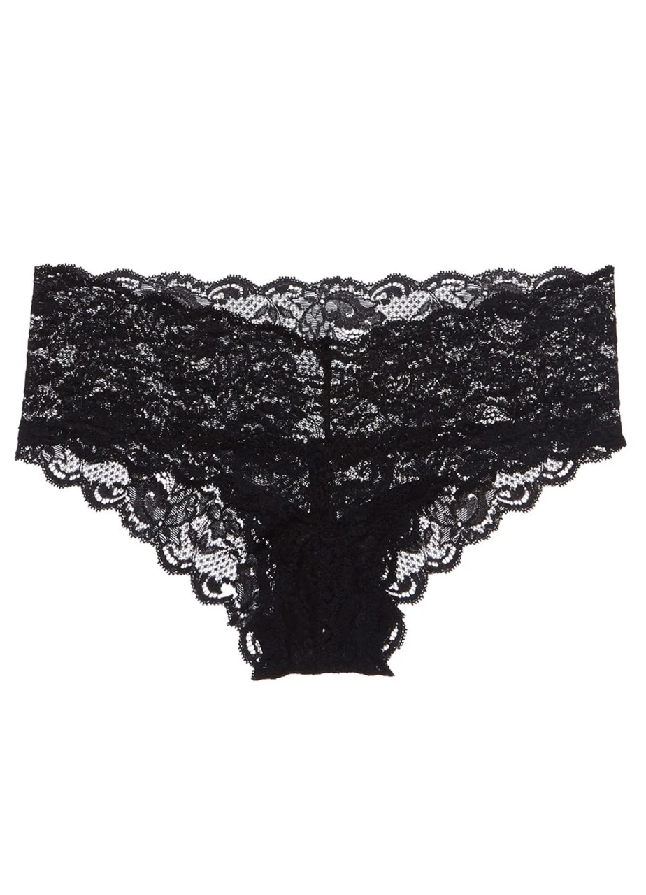 Der hüftig sitzende Panty „Never Say Never“ aus weicher, stretchiger und nicht-transparenter Spitze, die flach am Körper anliegt, passt perfekt zu dem Bralette dieser Serie. Der Bund ist ebenfalls mit elastischer Spitze besetzt.