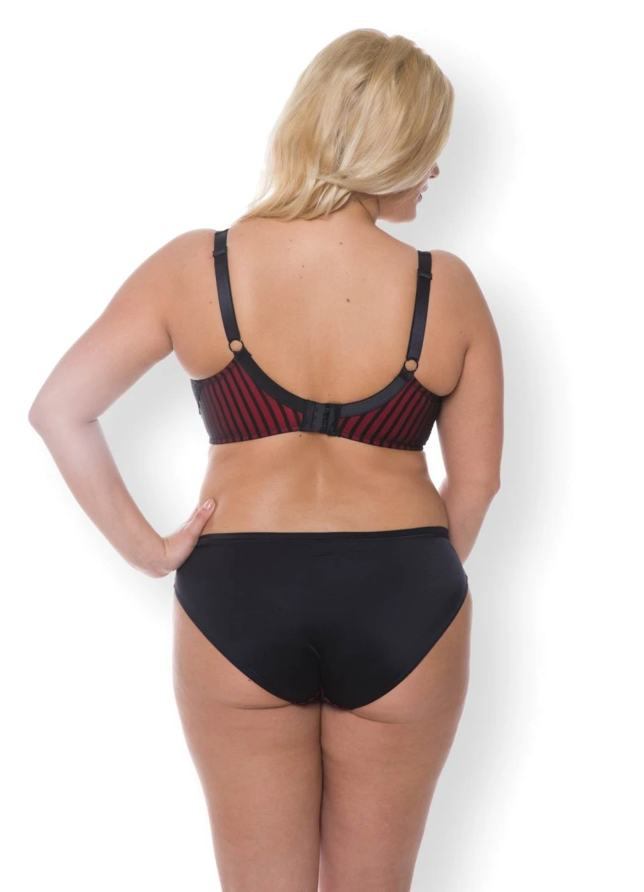 Der Spacer-BH „French Can Can“ in schwarz/rot ist durch seine glatte Oberfläche unter jedem Kleidungsstück fast unsichtbar. Die nahtlos verarbeiteten, vorgeformten Spacer-Cups sind in einem Hitech-Verfahren hergestellt und sorgen so für Atmungsaktivität. Die Double-Face-Ware, bei der die angenehm weiche Seite auf der Haut liegt, transportiert die entstehende Feuchtigkeit über die außen liegende Mikrofaser ab. Dies verspricht ein besonders angenehmes Tragegefühl. Sein dunkles Schwarz der Vorderseite, kombiniert mit den schwarz-roten Streifen seiner Rückseite sind ein toller Hingucker!