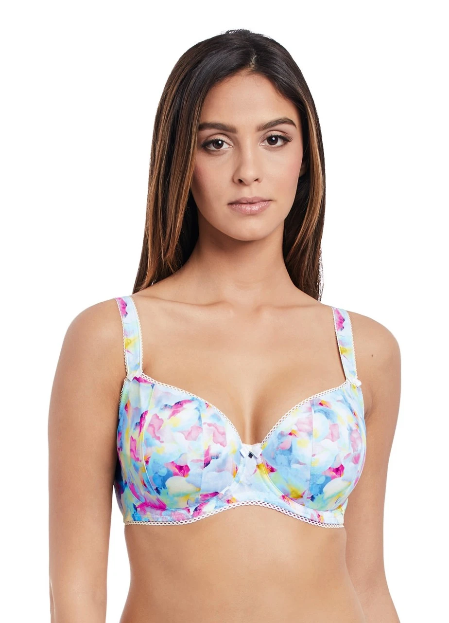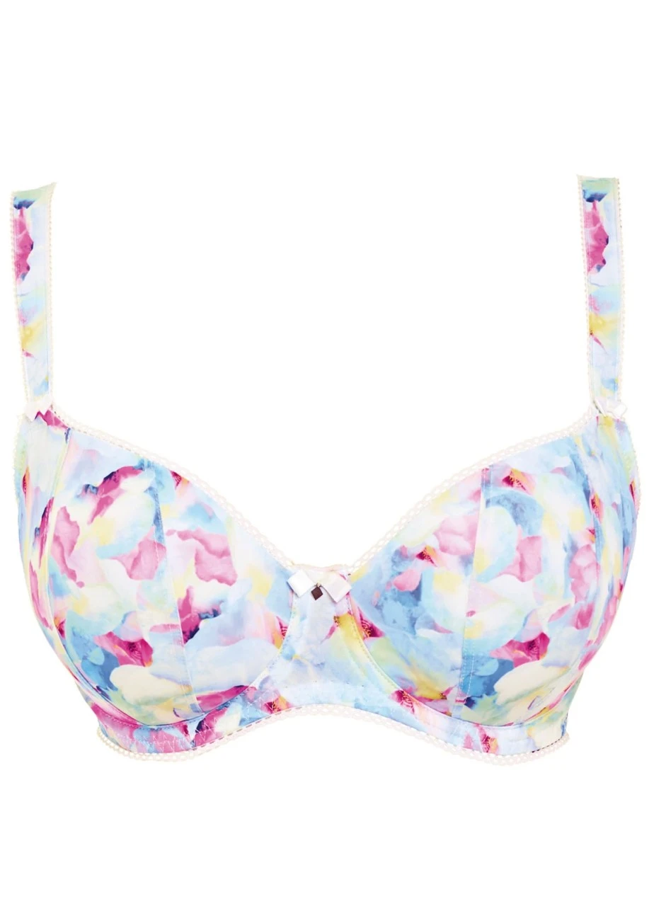 Märchenhaft schön ist dieser tief geschnittene Bügel-BH „Jewel Garden“. Hübsche Blütenblätter in sanften Pastelltönen in Gelb, Blau und Rosa. Weiche Cups geben Form und die zarten weißen Spitzen am Rand verleihen diesem Halbschalen BH einen verführerischen Abschluss. Marke: FreyaAA3893WB