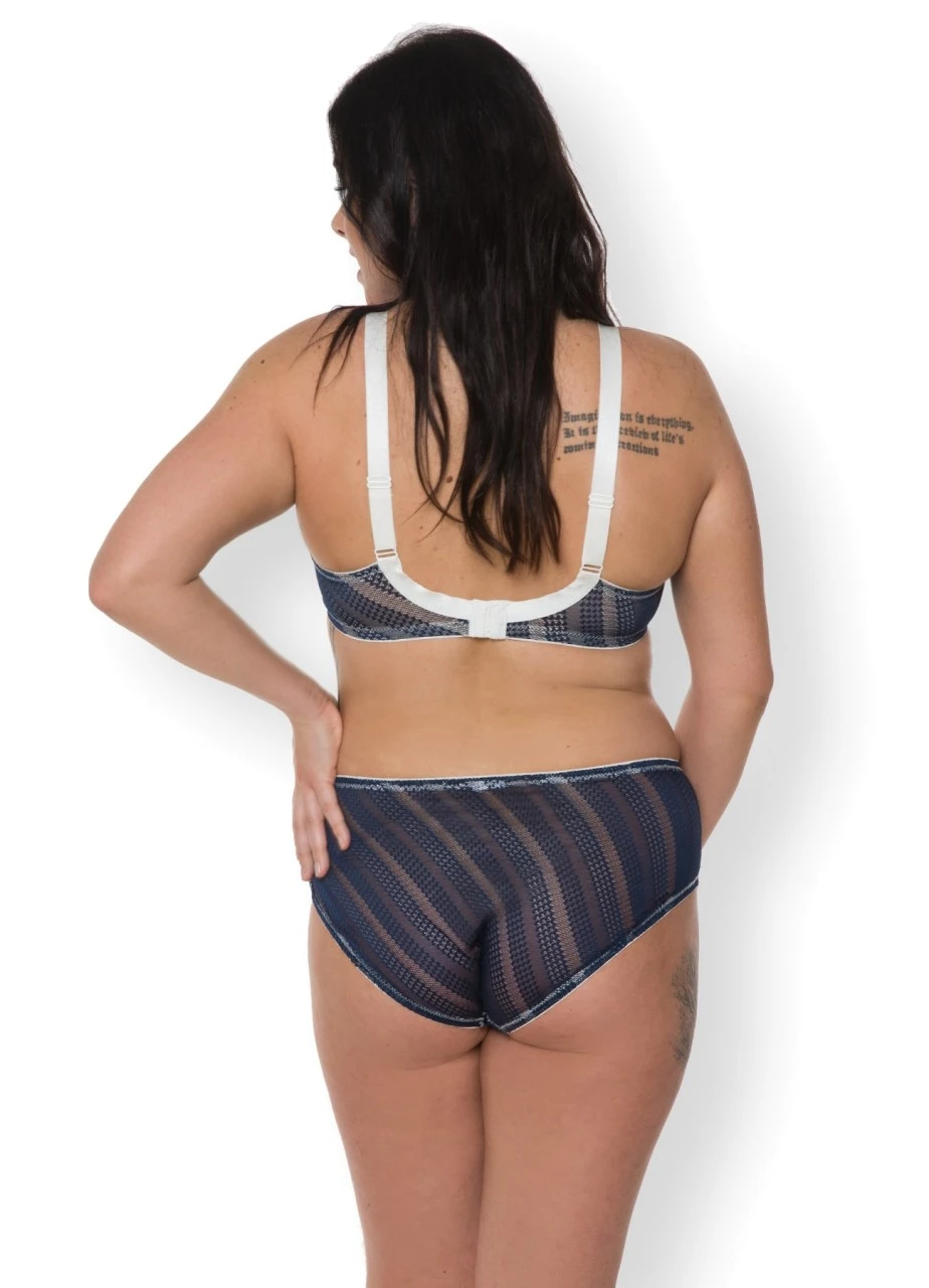 Der Hüftslip zum passenden Bügel-BH „Lola“ ergänzt ihr sexy Outfit. Durch die transparente Spitze in ecru und marine ist dieser Slip besonders verführerisch. 2581ON