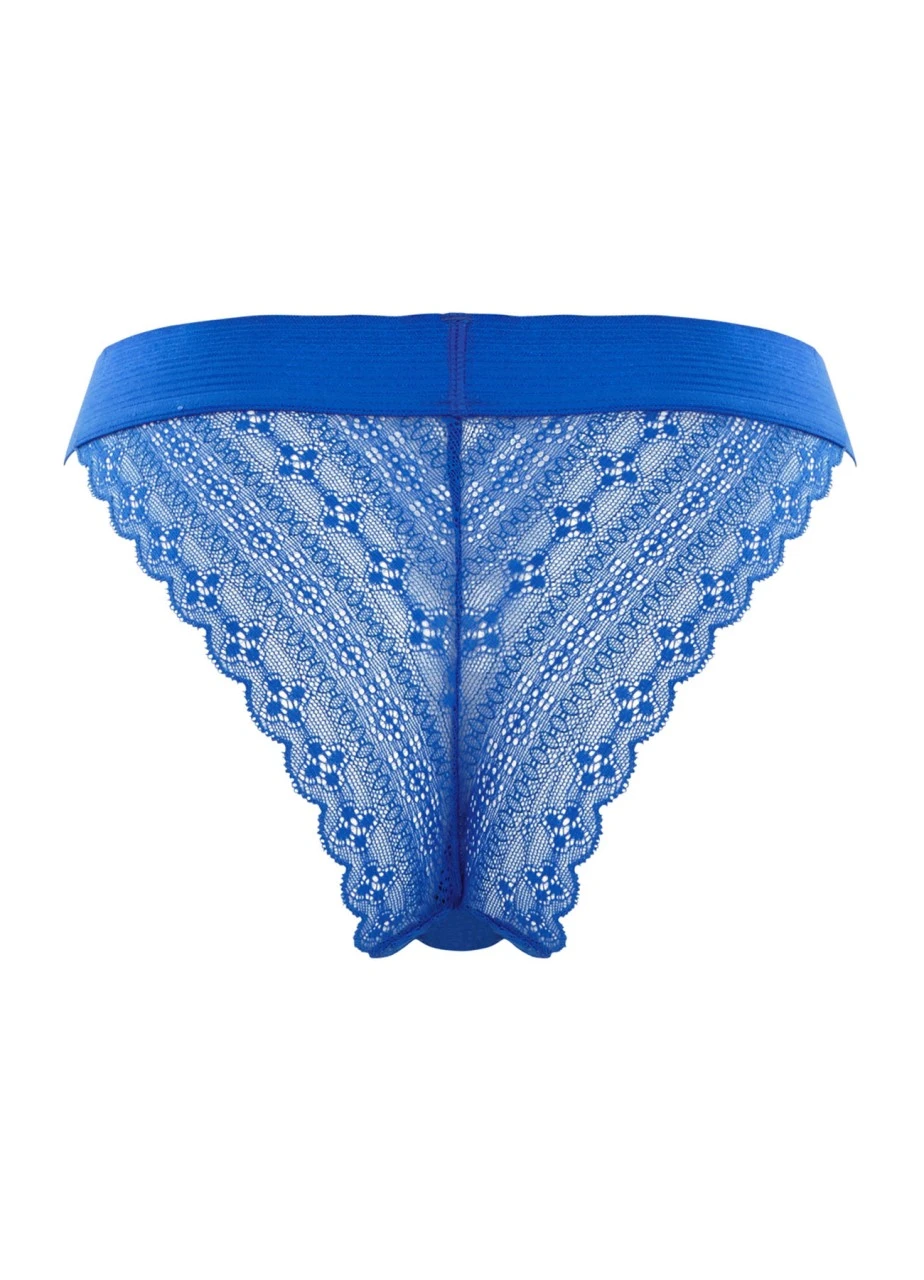 Der Tanga „Lyzy“ bedeckt so wenig, wie er nur kann. Sein leuchtendes Blau ist auffällig schön, das Material angenehm weich. Die Spitze ist nicht nur stylish, sondern auch unsichtbar unter der Kleidung. Marke: Panache
