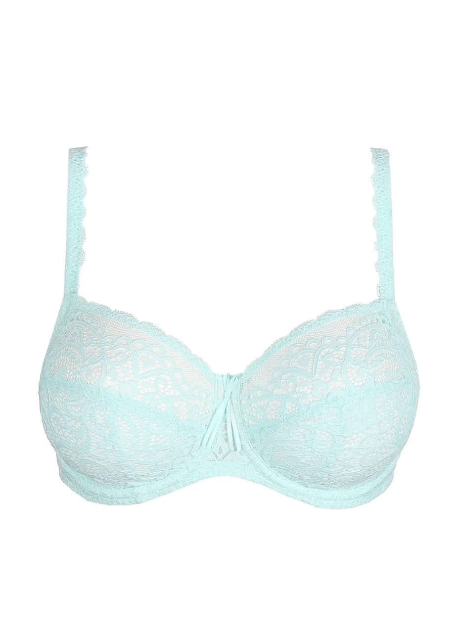 Der Bügel-BH „I Do“ ist besonders sinnlich. Seine Spitze läuft nicht nur über das Körbchen, sie verläuft weiter über die Träger und bis zum Rücken. Eine kleine, süße Schleife am Steg ist ein weiteres besonders schönes Vintage-Detail. Durch den Bügel und das Seitenteil wird die Brust angehoben und zentriert. Die Spitzen machen ein besonders feminines Dekolleté.