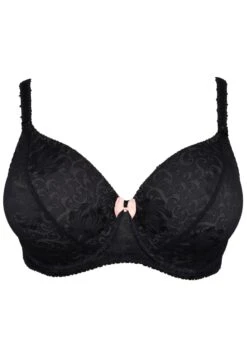 Der Push-Up BH „French Can Can“ hat das gewisse Etwas, mit dem Sie sich richtig sexy fühlen! Durch seine Schalen und den Push-Up-Effekt verleiht er Ihnen atemberaubende Kurven. Die Vorderseite ist komplett schwarz-rot gestreift, die Rückseite ist aus durchsichtiger schwarzer Spitze, genauso wie die sanften Träger. Ein kleines rotes Schleifchen zwischen den beiden Cups ist ein verspieltes Detail.